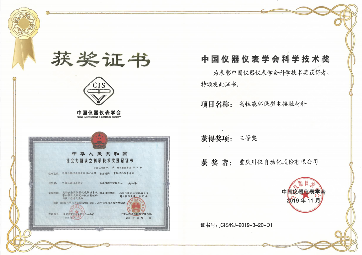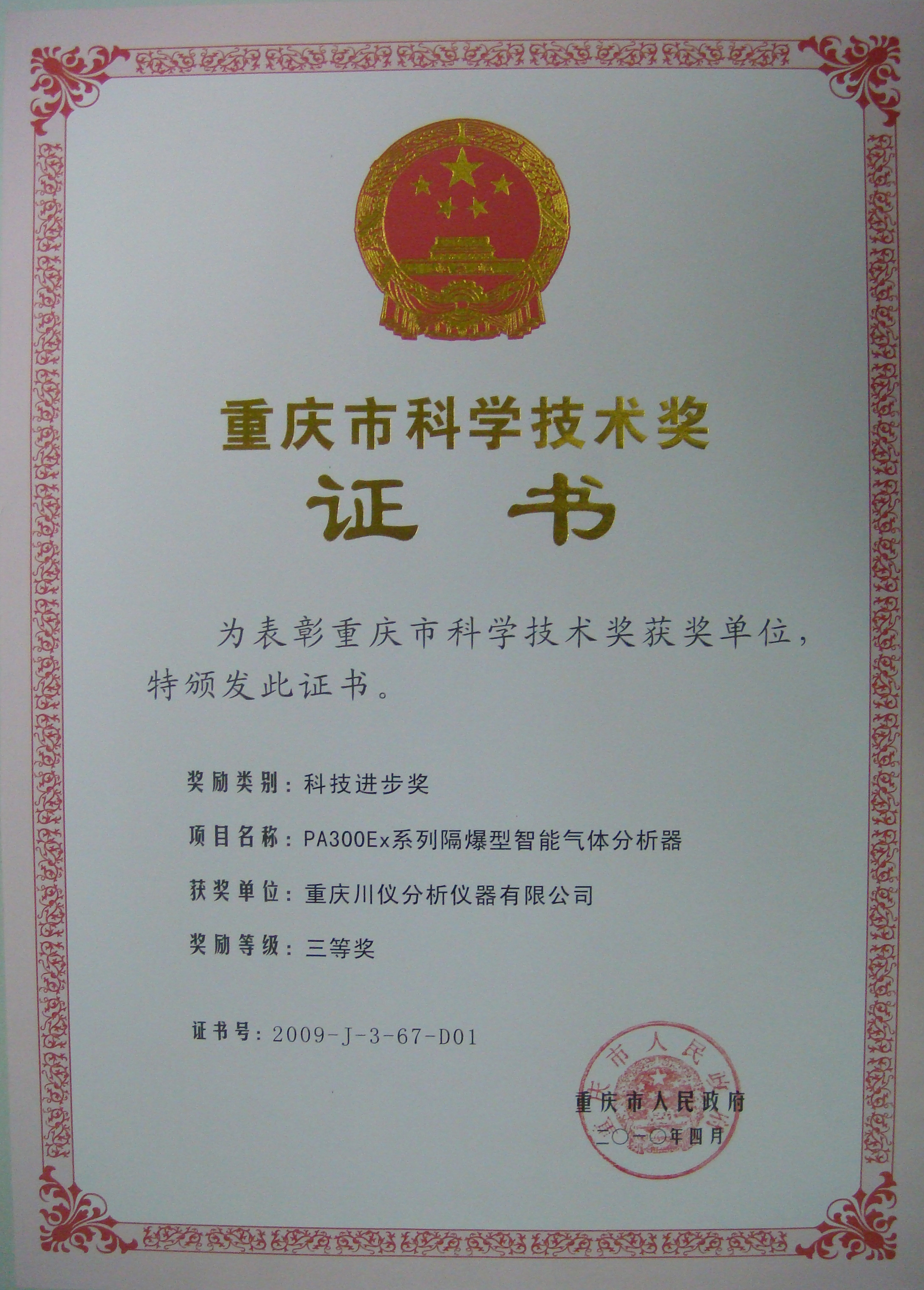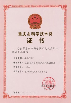 重慶市科委科技進(jìn)步獎(jiǎng)三等獎(jiǎng)