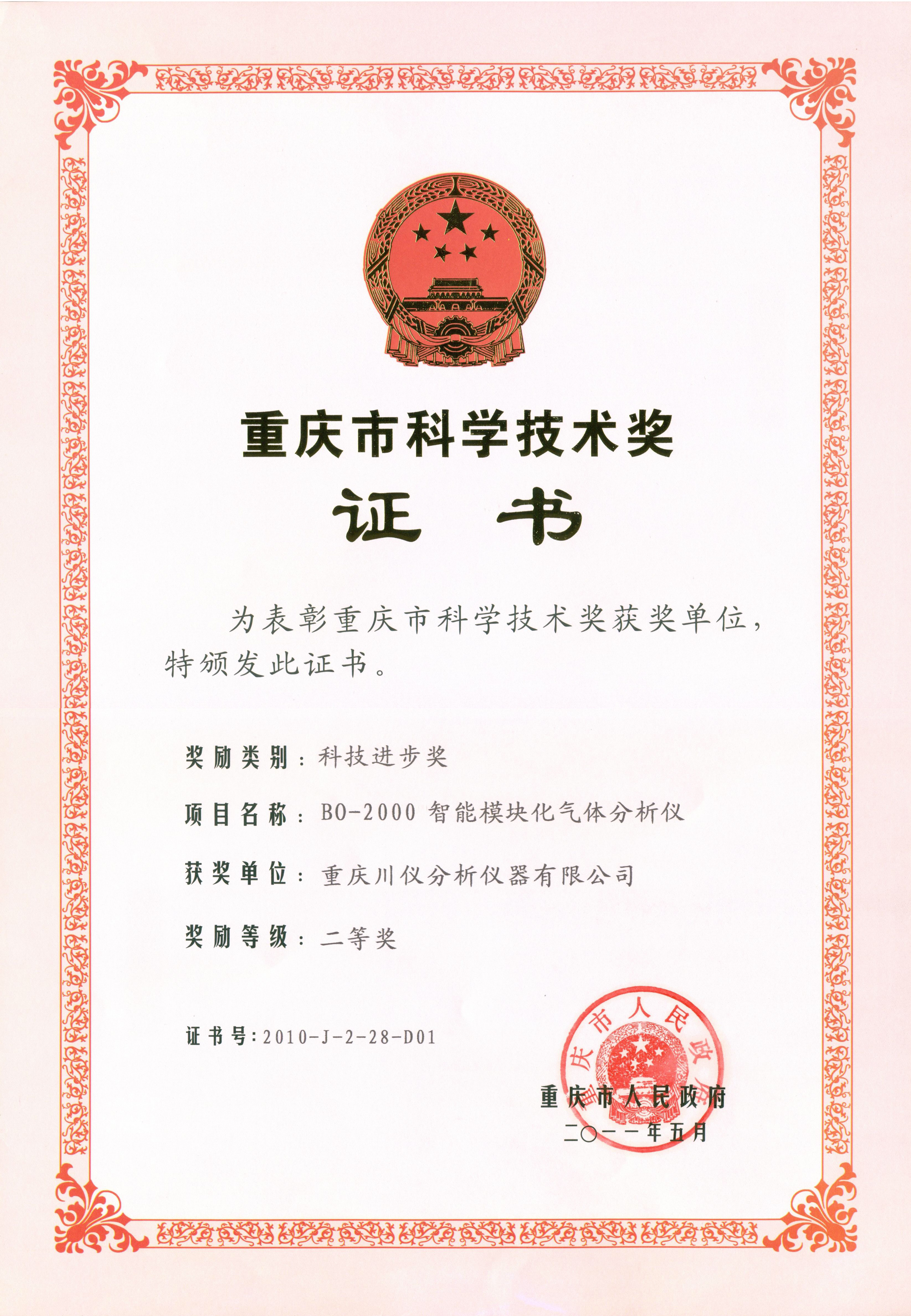 重慶市科技進(jìn)步二等獎(jiǎng)