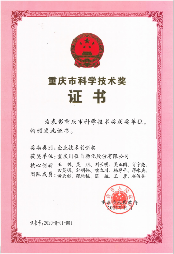 重慶市科學(xué)技術(shù)獎(jiǎng)-一等獎(jiǎng)