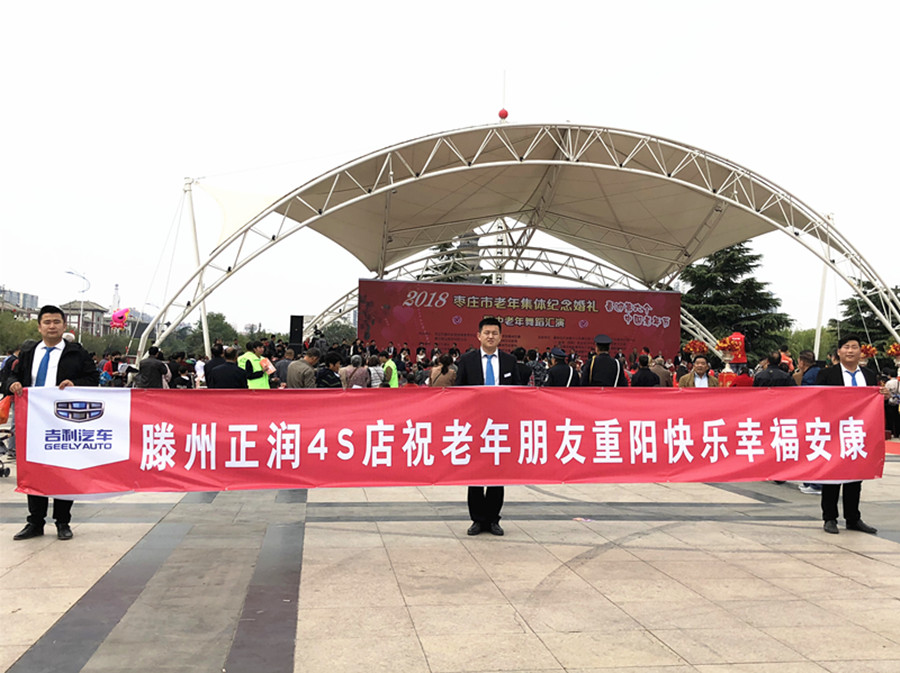 滕州正潤吉利4S店提供了6輛試乘、試駕車作為婚車參加了此次活動,負責(zé)接送婚禮老人、體驗試乘以及老年車模紀念留影等。