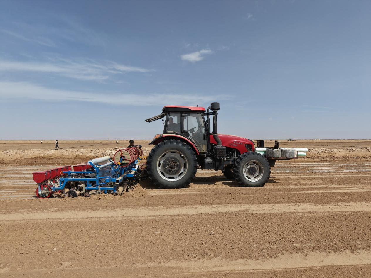 在庫(kù)車水控農(nóng)業(yè)發(fā)展有限公司萬(wàn)畝棉田里,采用北斗導(dǎo)航無(wú)人駕駛技術(shù)的智能播種機(jī)正以厘米級(jí)精度勻速行進(jìn)。