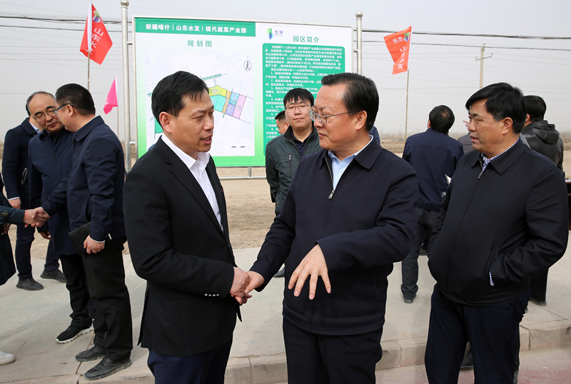 3月14日,新疆維吾爾自治區(qū)黨委副書記李鵬新一行到新疆喀什(山東水發(fā))現(xiàn)代蔬菜產(chǎn)業(yè)園項目現(xiàn)場進行調(diào)研。喀什地委書記李寧平、疏勒縣委書記董建,疏勒縣委副書記、援疆指揮部指揮曹永湖,山東水控發(fā)展集團有限公司總經(jīng)理助理、新疆農(nóng)業(yè)板塊負責人劉道營,新疆東魯水控農(nóng)業(yè)發(fā)展有限公司相關負責同志陪同。