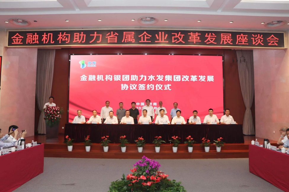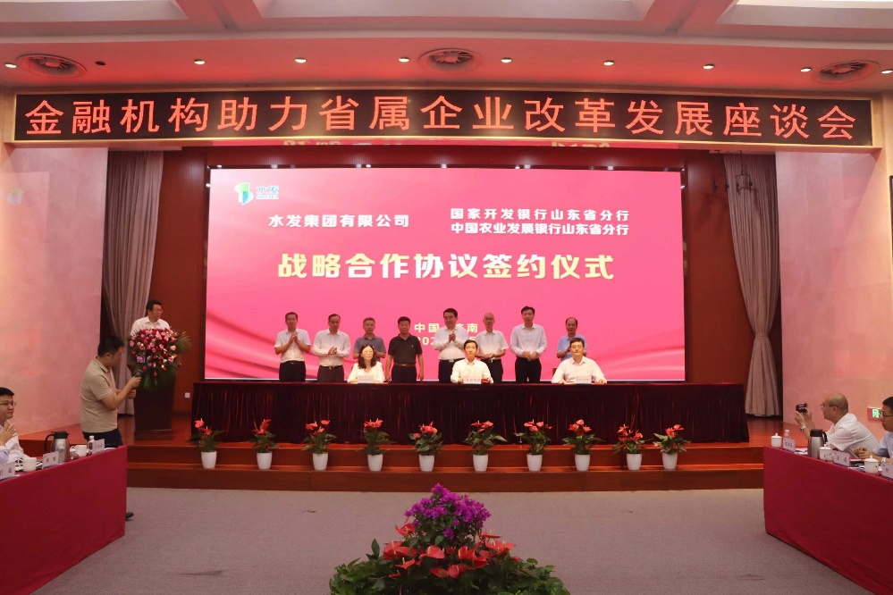 會上,國家開發(fā)銀行山東省分行、中國工商銀行山東省分行、中國建設(shè)銀行山東省分行、中國銀行山東省分行、中國農(nóng)業(yè)銀行山東省分行、中信銀行濟南分行、恒豐銀行濟南分行、民生銀行濟南分行、渤海銀行濟南分行等銀行與水發(fā)集團簽署了金融機構(gòu)銀團助力水發(fā)集團改革發(fā)展協(xié)議,國家開發(fā)銀行山東省分行、中國農(nóng)業(yè)發(fā)展銀行山東省分行分別與水發(fā)集團簽署了戰(zhàn)略合作協(xié)議。