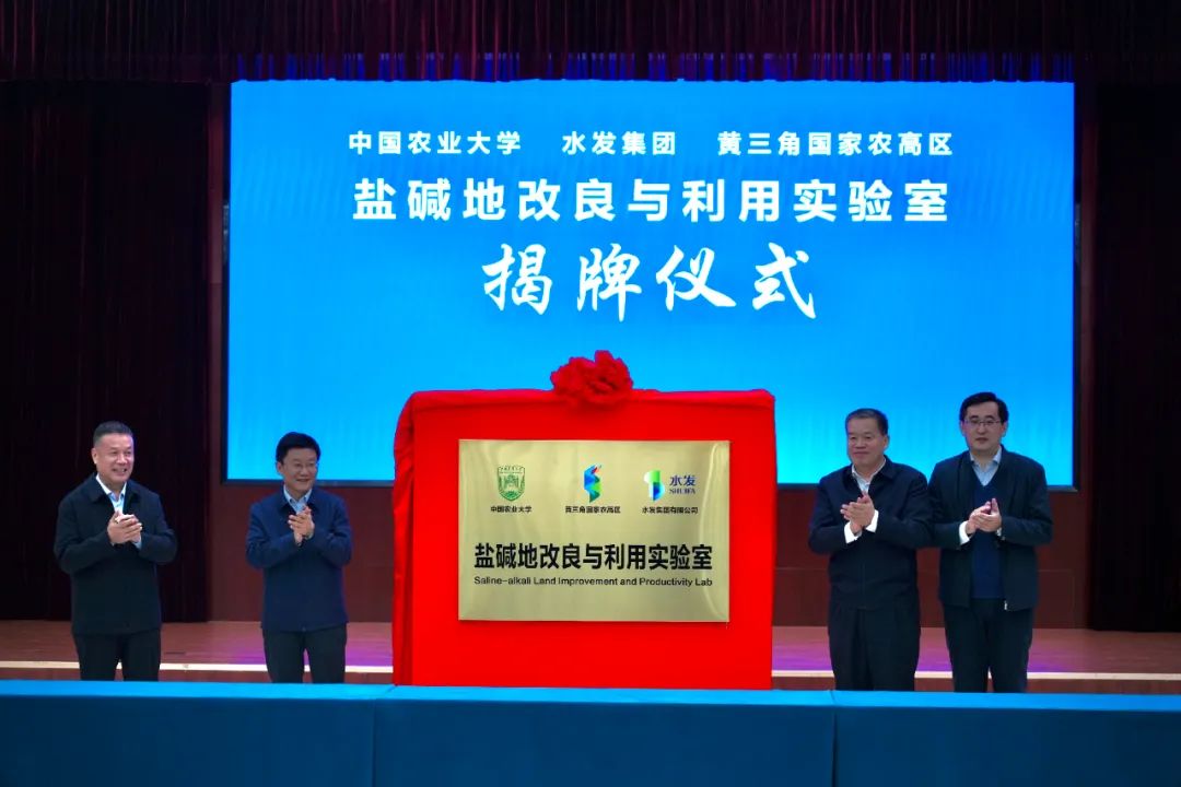 11月8日,水發(fā)集團與中國農(nóng)業(yè)大學、山東省黃三角國家農(nóng)高區(qū)共建鹽堿地改良與利用實驗室簽約揭牌儀式在黃三角國家農(nóng)高區(qū)舉行。水發(fā)集團黨委書記、董事長劉志國,黃三角農(nóng)高區(qū)黨工委副書記朱英坤,中國農(nóng)業(yè)大學科學技術發(fā)展研究院常務副院長、教授崔振嶺出席簽約儀式。黃三角農(nóng)高區(qū)黨工委副書記、管委會常務副主任田和友主持會議。